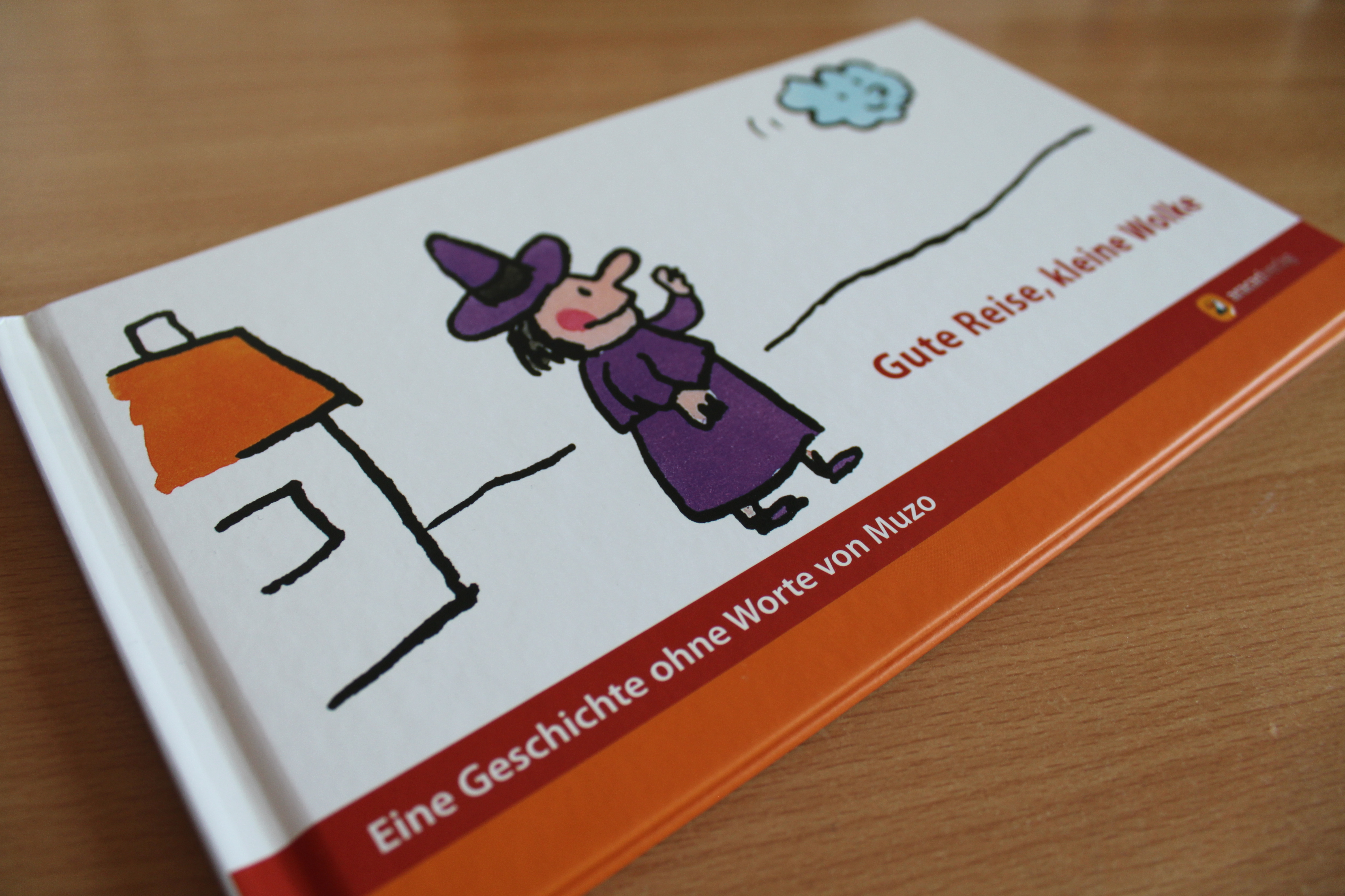 „Eine Bildergeschichte ohne Worte, die zu immer wieder neuem Entdecken und Nacherzählen einlädt. Die kleine Wolke nimmt uns mit auf eine Reise voller Begegnungen und Verwandlungen, ganz ohne Worte, auf eine einfache, poetische Art und Weise. „