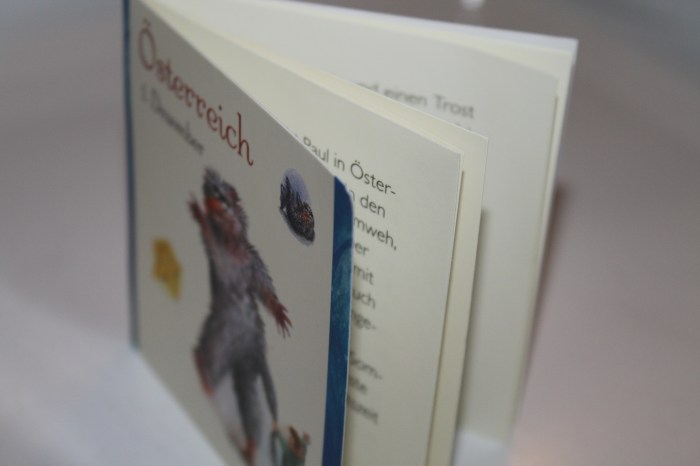 Ein Adventskalender im Format 66,5 x 45,5 cm! Das ist eine beachtliche Größe und macht sich wunderbar an einer Wand. Die hinter den 24 Türchen versteckten kleinen Bücher haben eine Größe von 8,5 x 8,5 cm und bestehen durchschnittlich aus 15 Seiten (siehe Bild unten). Mit der Überschrift „Weihnachten in aller Welt“ ist auch schon die Thematik dieses Adventskalenders verraten. Jedes Buch ist einem bestimmten Land gewidmet und erzählt von den jeweiligen Weihnachtstraditionen. In diesen kurzen Geschichten lernen die Kinder die Weihnachtsbräuche z.B. von Österreich, Mexiko, Frankreich, Neuseeland oder Ecuador kennen. Auch die jeweiligen Bezeichnungen für Weihnachtsmann und das Christkind in den bestimmten Landessprachen finden in den Büchern Erwähnung.