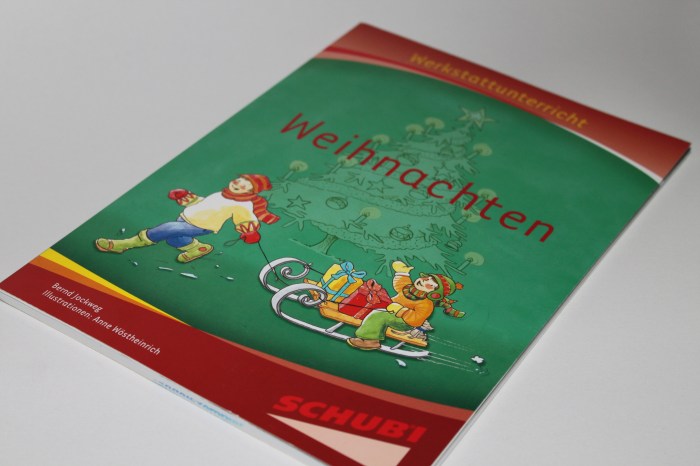 Im Anhang befinden sich Lösungsblätter und zwei Schmuckblätter. Ergänzt wird die Werkstatt mit einigen Spielen, die farbig und auf einem Kartonpapier aufgedruckt sind. Lesekarten in zwei Differenzierungsstufen, ein Weihnachtsdomino und ein Sortierspiel komplementieren die Sammlung.