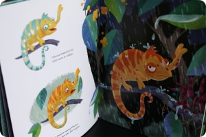 Er ist witzig, höflich, mutig und wird trotzdem nicht gesehen. Erst als ihm ein Missgeschick passiert und er sich nicht um Aufmerksamkeit bemüht, richten die Tiere ihr Augenmerk auf ihn. Und was lässt sich mit einem Chamäleon besser spielen als Verstecken?