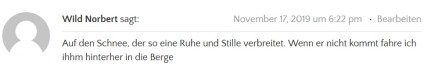 EDIT: Herzlichen Dank für alle herzerwärmenden Beiträge. Schon alleine das Lesen steigerte die Vorfreude auf die Besinnlichkeit der Vorweihnachtszeit. Der Zufallsgenerator entschied sich für Wild Norbert!