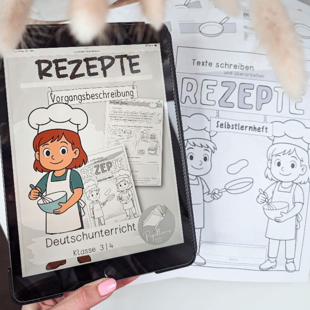 Entdecke das Selbstlernheft „Rezepte: Texte schreiben“! Es ist für Schüler*innen der 3. und 4. Klasse konzipiert, um die Textform der Vorgangsbeschreibung alltagsnah anhand von Rezepten zu lernen.