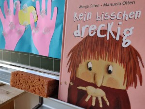 Dieses Buch kann hier ansetzen und die Hygiene zum Thema machen, allerdings bin ich von der Darstellung des Krankenhausbesuchs und der damit verbundenen „Angstmach-Absicht“ nicht 100%ig überzeugt. Lieber wäre es mir, wenn die „echten“ Folgen der Infektion dargestellt werden würden, mit einer daran anschließenden Erklärung, weshalb Händewaschen so wichtig ist. Auch der Schluss ist zwar amüsant, doch pädagogisch gesehen nicht unbedingt das, was man als „Lehre“ den Kindern mitgeben möchte. Je nach Zielsetzung des Einsatzes kann die letzte Szene auch auszulassen oder von den Kindern ergänzt werden.