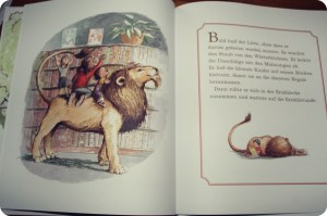 Dennoch stattet sie gemeinsam mit ihrer Mutter der Stadtbibliothek einen Besuch ab. Das ganze Bücherangebot erschlägt sie allerdings, sodass ihre Mutter ihr ein Buch in den Hand drückt, welches sie selbst in ihrem Alter verschlungen hat. Nun eröffnet sich Lisa eine ganz neue farbenfrohe Welt, die nun im Farbspiel der Illustrationen auch deutlich wird.