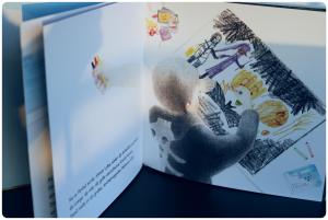 Das Sommerbild zeigt einen blauen Ozean mit einem kleinen Boot, während das Herbstbild etwas furchterregend daherkommt. Für das Halloween-Bild kommen die dunklen Farben zum Einsatz, sodass schließlich nur eine Farbe unbenutzt in der Schachtel zurückbleibt. Die vergessene Farbe heißt „Weiß“. Doch dann wird es zum Glück Winter und ein kleines Mädchen entdeckt die weiße Kreide. Als es zu schneien beginnt, ist sie genau die Richtige für diese Jahreszeit!