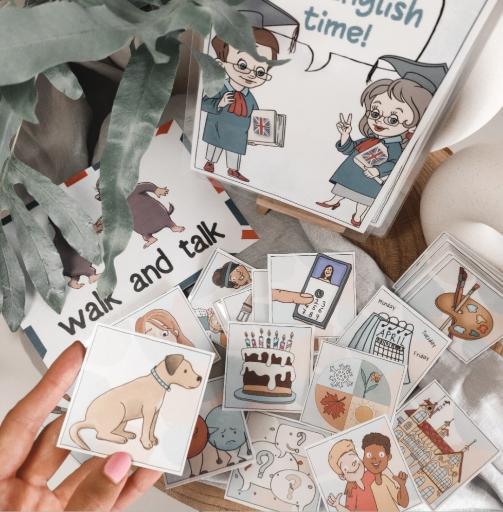 •Bei der Erstellung der Karten wurde darauf geachtet, dass die Vorderseite keine Hilfestellungen, außer dem Bildimpuls, gibt. So können leistungsstarke Schülerinnen und Schüler ganz alleine und selbstständig die Frage auf Englisch formulieren.