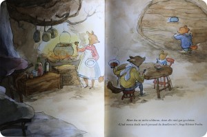 Das litauische Duo hat sich der Redewendung „Lügen haben kurze Beine“ bedient und thematisiert die Werte „Ehrlichkeit“ und „Aufrichtigkeit“ auf sehr kindgerechte Art und Weise. Wer kennt es nicht? Es beginnt mit einer kleinen, kaum zu erwähnenden Nichtigkeit und schwupps ist die Nuss aus dem Korb schon in Kinderhände geraten, während Mama Eichhorn aus dem Haus ist. Rabe Knips schlägt noch vor zu warten, um Erlaubnis erbitten zu können, doch Eichhörnchen Ekki kann es nicht abwarten und so landet eine Nuss nach der anderen im Mund.
