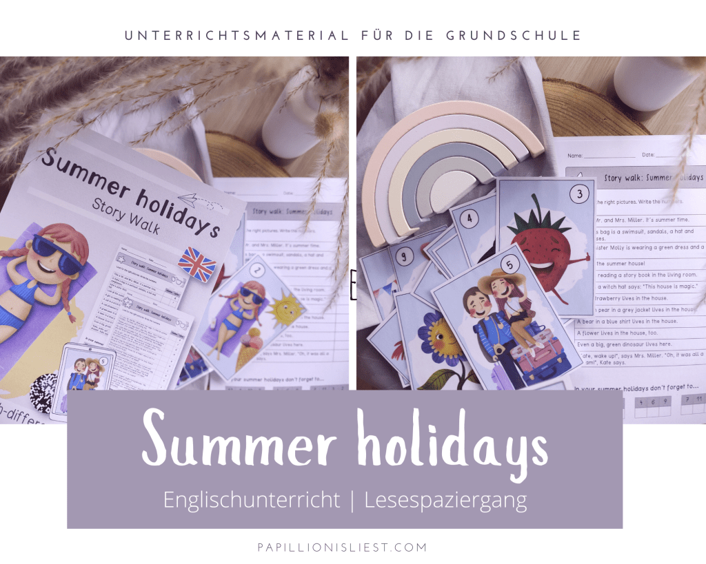Der Story Walk „Summer holidays“ thematisiert inhaltlich den Aufbruch der Familie Miller in die Sommerferien. Sie kommen in einer Ferienwohnung an, die etwas magisch daherkommt. Hier werden sie von sprechenden Birnen, fröhlichen Erdbeeren und eisliebenden Dinosauriern begrüßt. Was ist Fantasie und Wirklichkeit? Oder handelt es sich einfach um einen Traum, auf dem Weg in die heiß ersehnten Sommerferien?