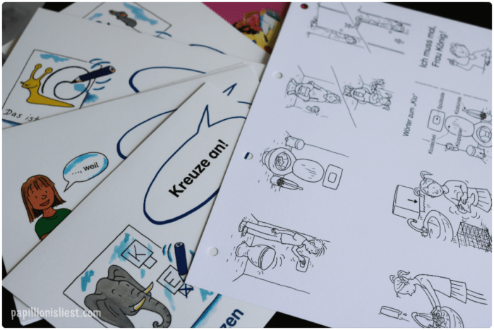 Die Kopiervorlagen sind stets übersichtlich, nicht allzu überladen und vom Layout ansprechend gestaltet. Das ist bei den Finken-Materialien immer ein großer Pluspunkt, den auch viele Förderkinder schätzen. Die 6 bunten Poster sind glücklicherweise auch auf der mitgelieferten CD enthalten, sodass diese auf einem Beamer oder mithilfe eines Whiteboards bequem gezeigt werden können. Das ist vor allem heutzutage viel wert, wenn der nötige Sicherheitsabstand eingehalten werden muss. Auf der CD befinden sich auch die wunderbar illustrierten 16 Operatoren-Karten, die die Arbeitsanweisungen, wie „kreise ein, benenne, klebe auf, kreuze an“ auch visuell verdeutlichen. Dafür werden viele DaZ-Kinder dankbar sein, denen das Erlesen der Arbeitsaufträge noch Mühe bereitet.