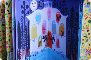 Erst auf den zweiten Blick entfaltet sich die Magie dieses Bilderbuchs. Auch wenn es anfangs recht grell, laut und allgemein mit überbordender Farbigkeit und einem gewagten Eklektizismus in Kombination mit folkloristischen Elementen daher kommt, stellt man schnell fest, dass es einen guten Kontrast zur ruhigen Geschichten darstellt, die von ihrer Botschaft durchaus simpel erscheint.